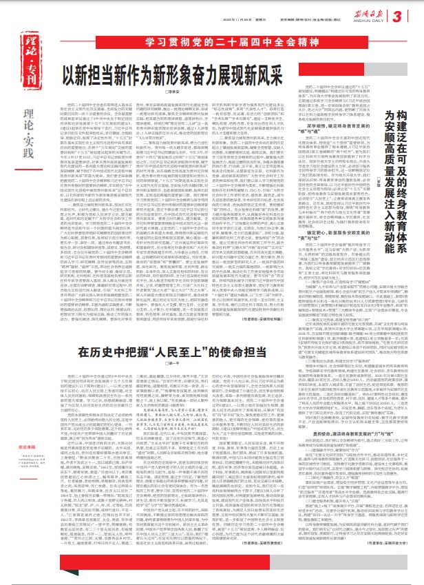 站在新起点,我们将以全会精神为指引,重点抓好三方面工作,让终身教育成为安顺高质量发展的“助推器”。