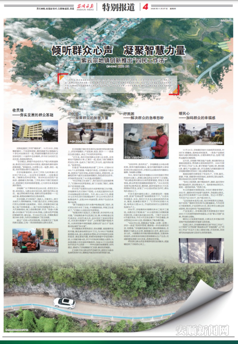 近年来,紫云自治县宗地镇坚持以人民为中心的发展思想,创新推行“收民情、汇民意、纾民困、暖民心”的“四民工作法”,把群众的呼声作为第一信号,把群众的需求作为第一任务,把群众的满意作为第一标准。从完善基础设施到壮大特色产业,从解决民生难题到提升人居环境,宗地镇正用一件件民生实事、一个个发展成果,描绘出一幅宜居宜业和美乡村的新画卷。