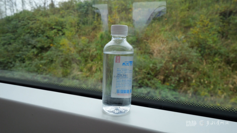这条线路被称为“云贵第一坡”,记者在列车上放置的一瓶水稳稳立住。而在这一平稳背后,是触及高铁设计极限的30‰坡度挑战。