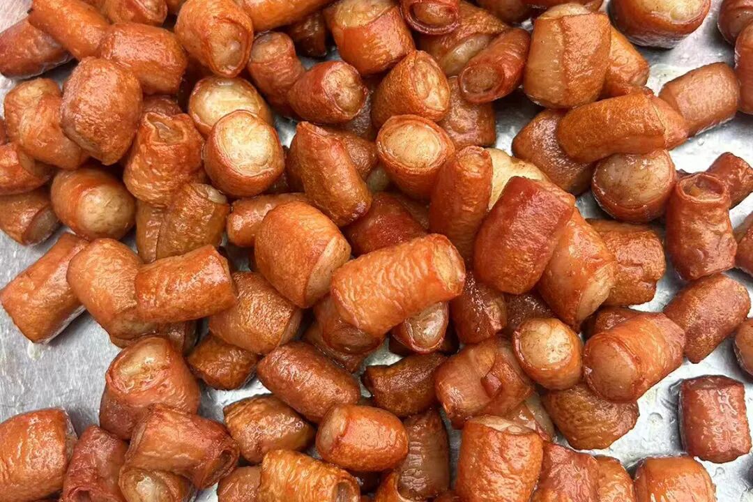 “我们只选生长周期足、体重300斤以上的土猪,取小肠最前端50厘米的‘肠头’。因需求特殊,屠宰行业甚至衍生出‘大油十二指肠’这个专称。”安顺屯中好美味食品有限公司总经理傅飞介绍,公司已与正大、牧原、双汇等头部养殖企业签订定向供应协议,构建起覆盖多省的原料采购网络。