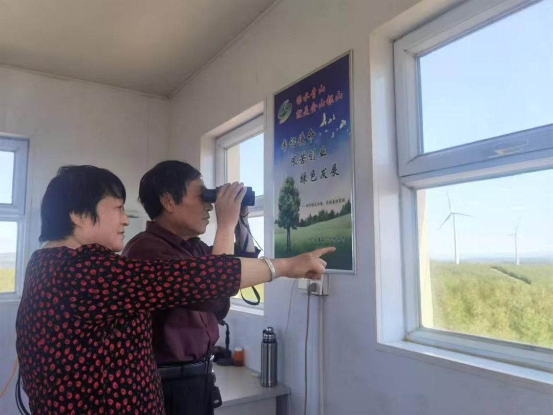 护林员刘军、王娟夫妇在望海楼工作、记录 塞罕坝机械林场供图