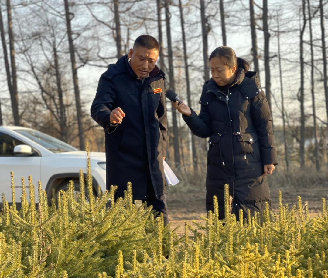 河北广播电视台孙月采访塞罕坝机械林场千层板分场场长张磊(左) 河北广播电视台记者新莉摄