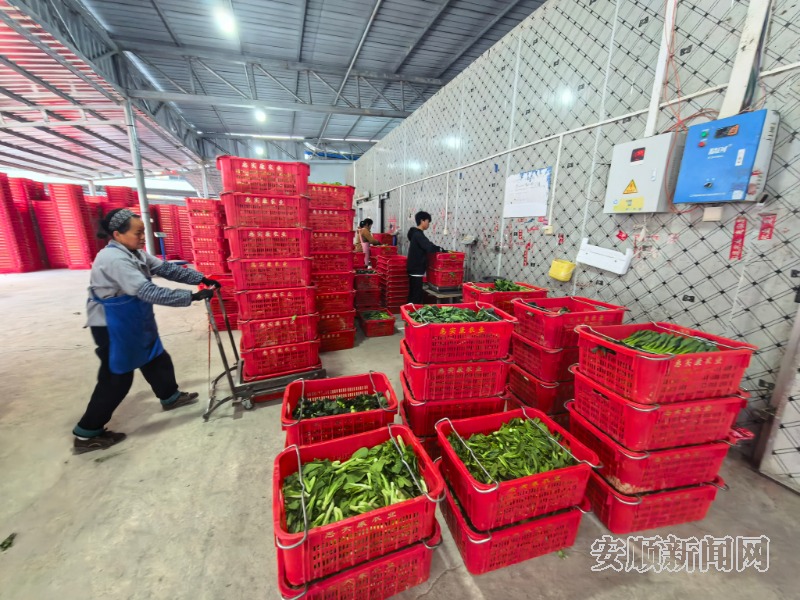 走进蔬菜园,成片的菜心、芥蓝随风摇曳,数十名工人忙着收割、分拣、装筐。“菜心长得好,一下午能收400斤,收入240元。”村民杨春芬笑着说。