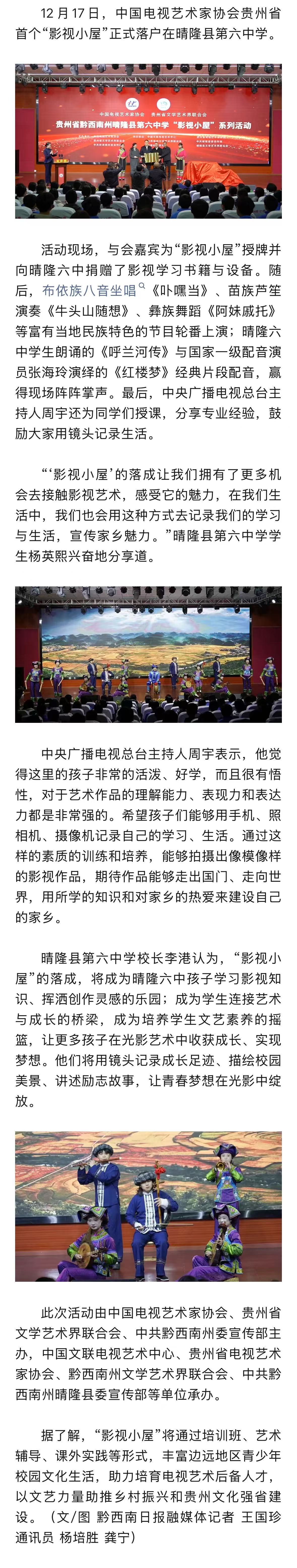 贵州省首个 “影视小屋” 落户黔西南晴隆六中