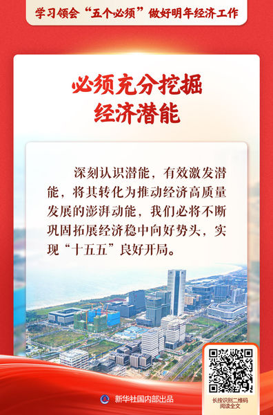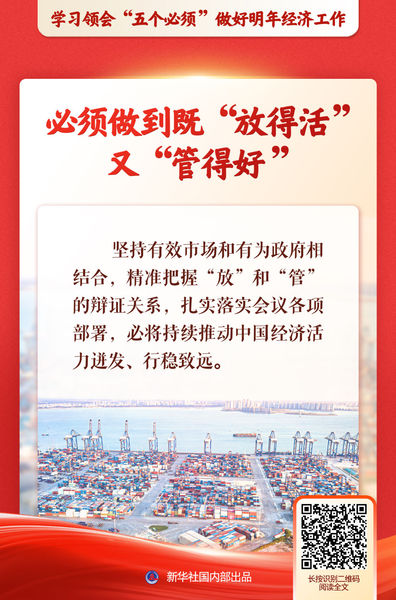 日前举行的中央经济工作会议上,习近平总书记以“五个必须”概括做好新形势下经济工作新的认识和体会。12月15日至19日,新华社播发一组五篇重磅述评,深入阐释“五个必须”的丰富意涵。