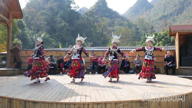 在欣赏完攀岩绝技后,游客们乘观光游船顺河而行,两岸青山叠翠、碧水悠悠,喀斯特地貌的雄奇与秀美尽收眼底。来到大河苗寨,苗族姑娘们身着盛装踏歌起舞,“上刀山、下火海”等传统民俗表演轮番登场,沉浸式的民族文化体验让游客流连忘返。