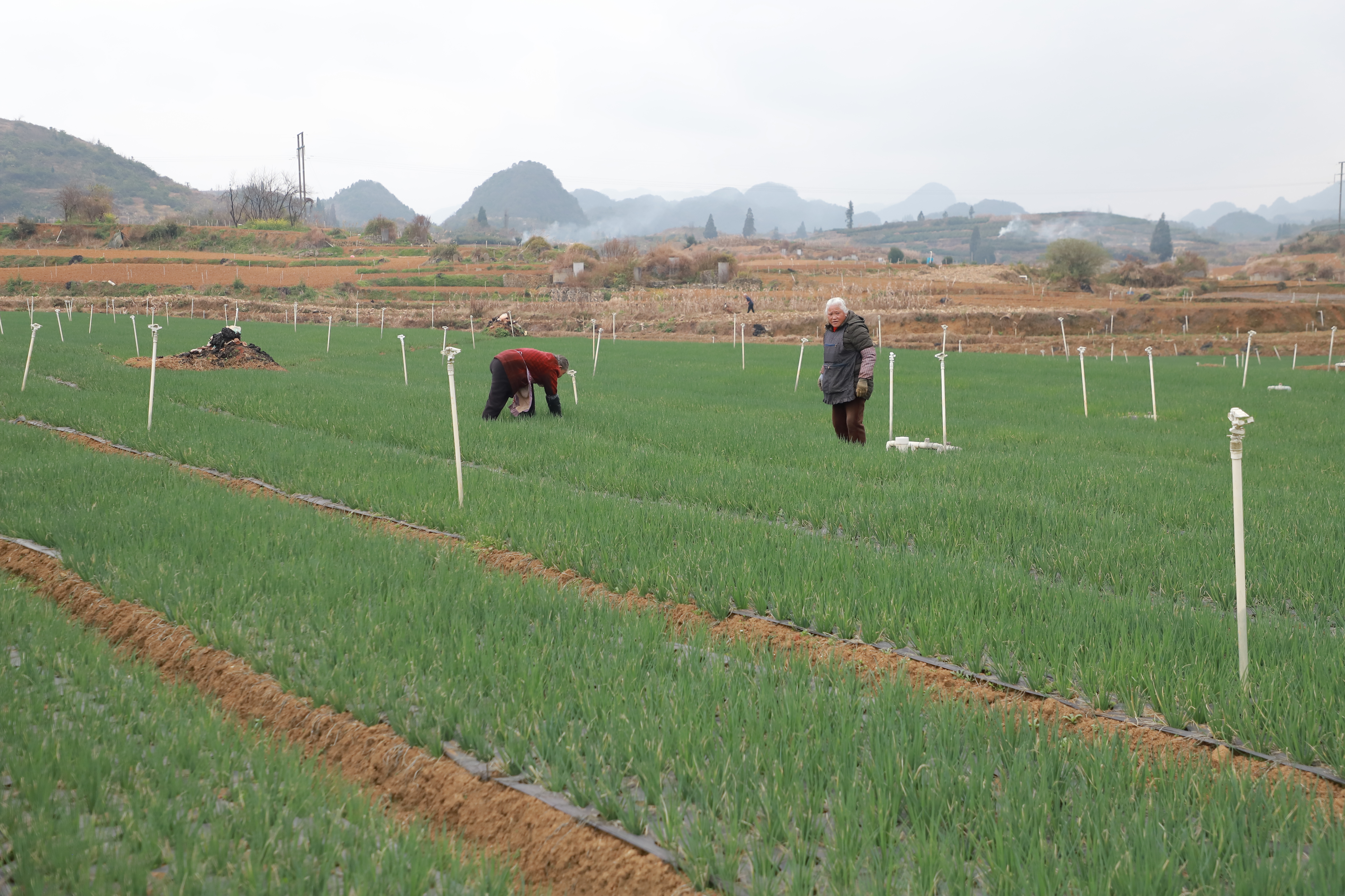 12月的普定县化处镇,千余亩香葱绿意盎然、葱香四溢。香葱基地内,农户们忙着拔葱、捆葱、搬运……