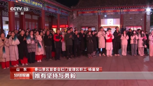 泰山景区管委会红门管理区职工杨童斐:习近平总书记的新年贺词中,句句鼓励人民,事事关于人民。作为一名泰山上的基层工作人员,我感到在中国式现代化新征程上,正如我们日常工作一样,常常需要去攀登悬崖峭壁,唯有坚持与勇毅,方能领略山顶的壮丽风景。