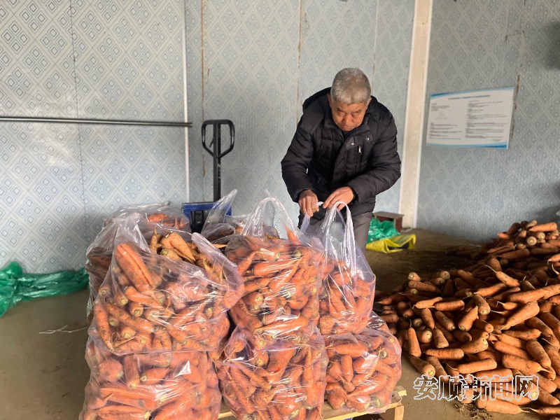 深冬时节,走进西秀区旧州镇新寨村的蔬菜基地,田垄间一派繁忙景象。30余名村民弯腰躬身,熟练地拔起、分拣、装筐,一根根色泽鲜亮、饱满多汁的胡萝卜在晨露中泛着诱人光泽,即将踏上运往粤港澳大湾区的旅程。这片由贵州赤象贸易有限公司打造的80余亩蔬菜基地,正以喜人的丰收景象,书写着“黔中沃土”与“湾区市场”的双向奔赴。