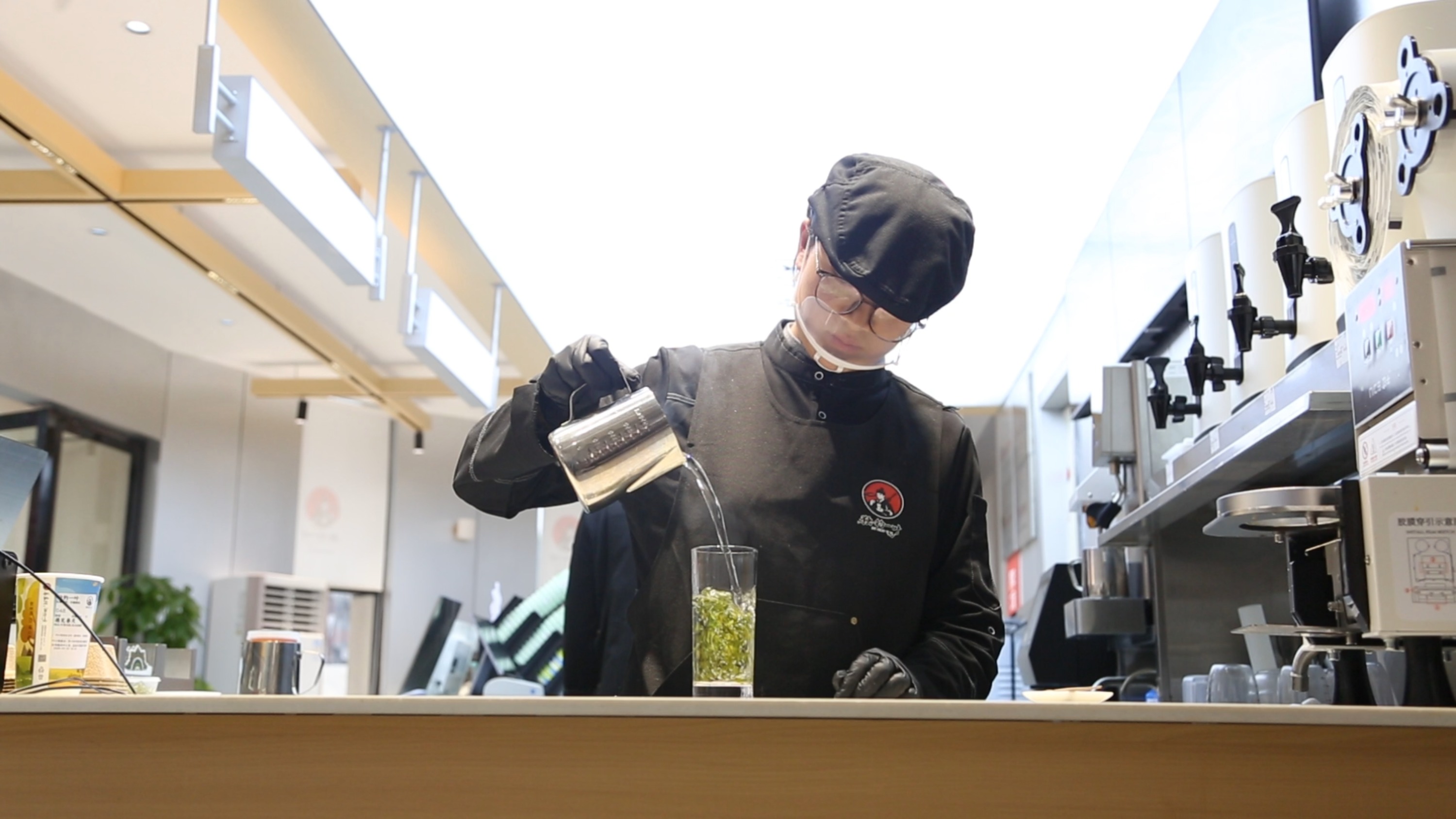 上午的活动刚结束,普安红集团董事长罗绍江便迫不及待赶回公司进行早茶与新式茶饮的调制研发,这款带着“遇见春天”寓意的新品是企业“独钓一叶”系列的其中一款。