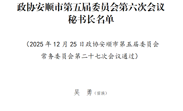 政协安顺市第五届委员会第六次会议秘书长名单