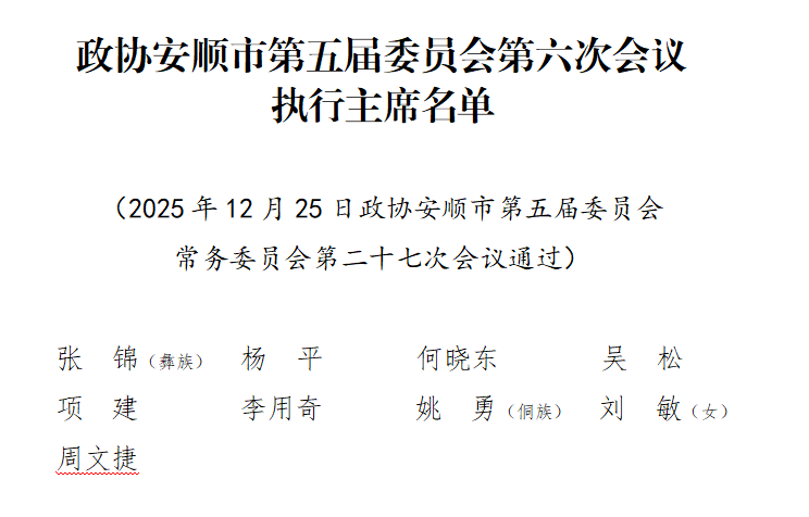 政协安顺市第五届委员会第六次会议执行主席分工名单