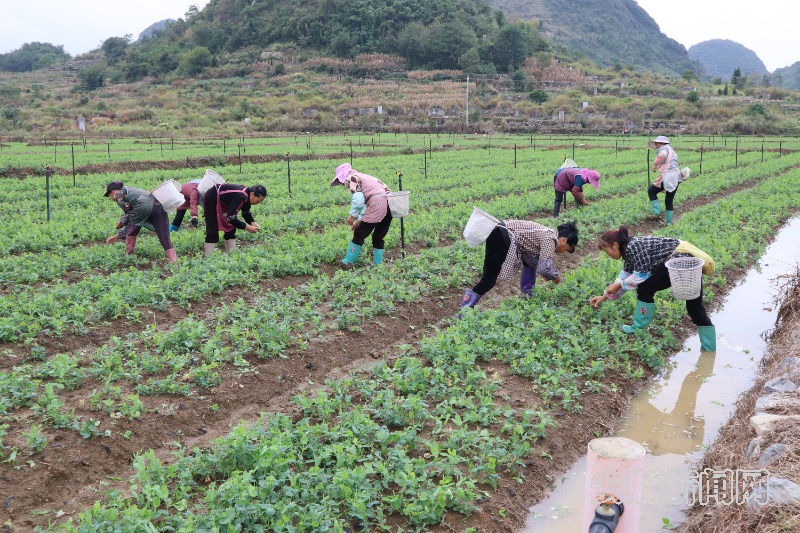 走进贵州扬迈虹农业发展有限公司位于余官村的蔬菜种植基地,100多亩豌豆尖正进入采收旺季。
