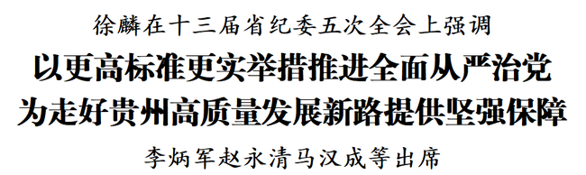 2月1日,十三届省纪委五次全会在贵阳召开。省委书记徐麟出席会议并讲话。他强调,要深入学习贯彻习近平总书记在二十届中央纪委五次全会上的重要讲话精神,进一步贯彻落实习近平总书记在贵州考察时的重要讲话精神,以更高标准、更实举措推进全面从严治党,为走好“十五五”时期贵州高质量发展新路提供坚强保障。