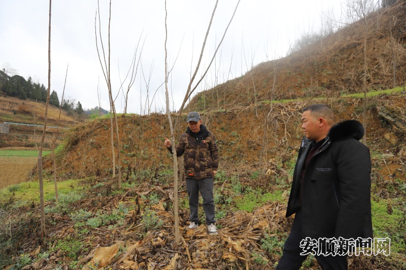 西秀区林业局技术人员查看黄柏树长势