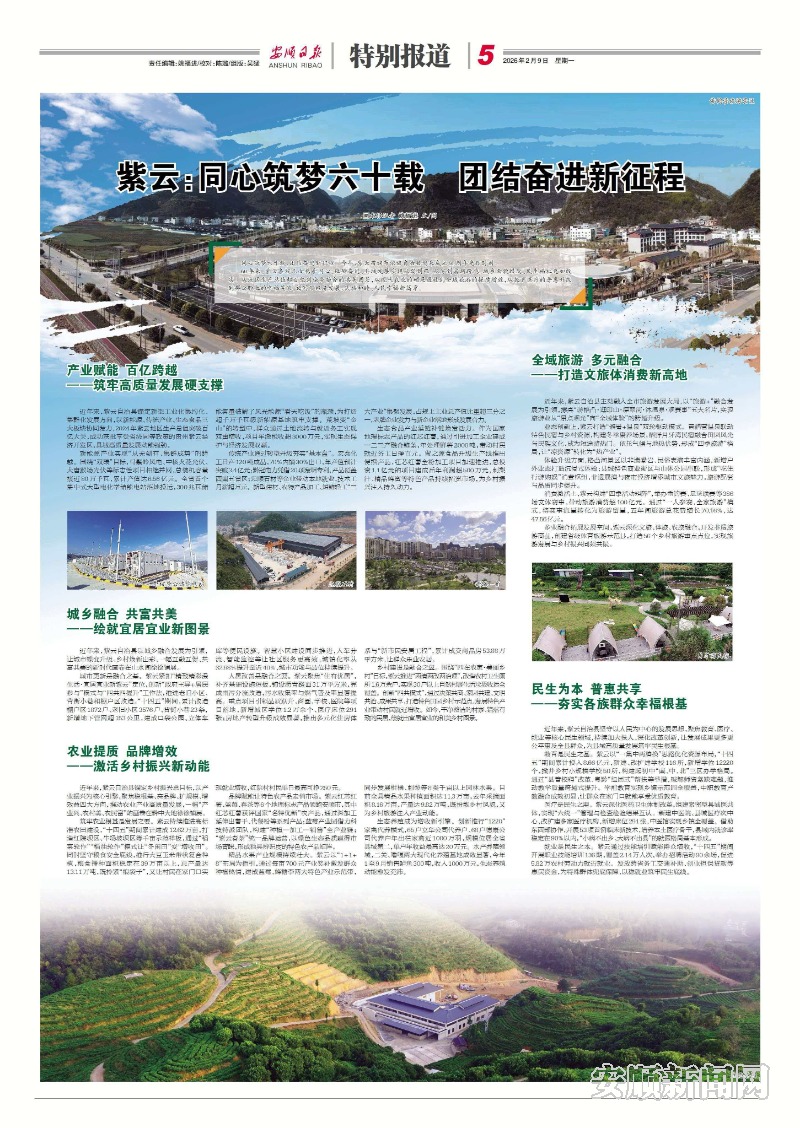 60年来,紫云各族儿女携手同心、砥砺奋进,县域发展实现从弱到强、从穷到富新跨越,城乡面貌蝶变、民生福祉更加殷实。从地区生产总值超百亿到城乡融合的共美图景,从现代农业的硕果盈枝到全域旅游的提质增效,从教育医疗的普惠升级到群众脸上的幸福笑容,谱写了经济发展、民族和睦、人民幸福新篇章。
