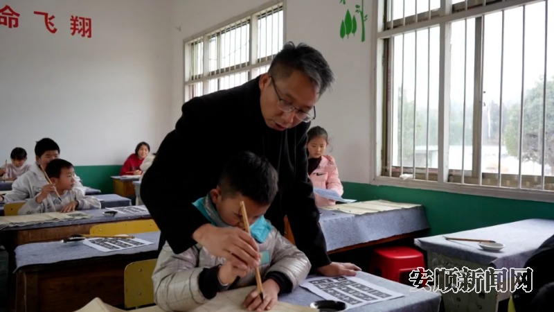 清晨时分,普定县马场镇云盘村的30余名孩子早早便来到课堂,他们凝神提笔、认真落笔,一笔一画间尽显专注,在老师的悉心指导下,认真揣摩书写技巧,感受书法艺术的独特魅力。