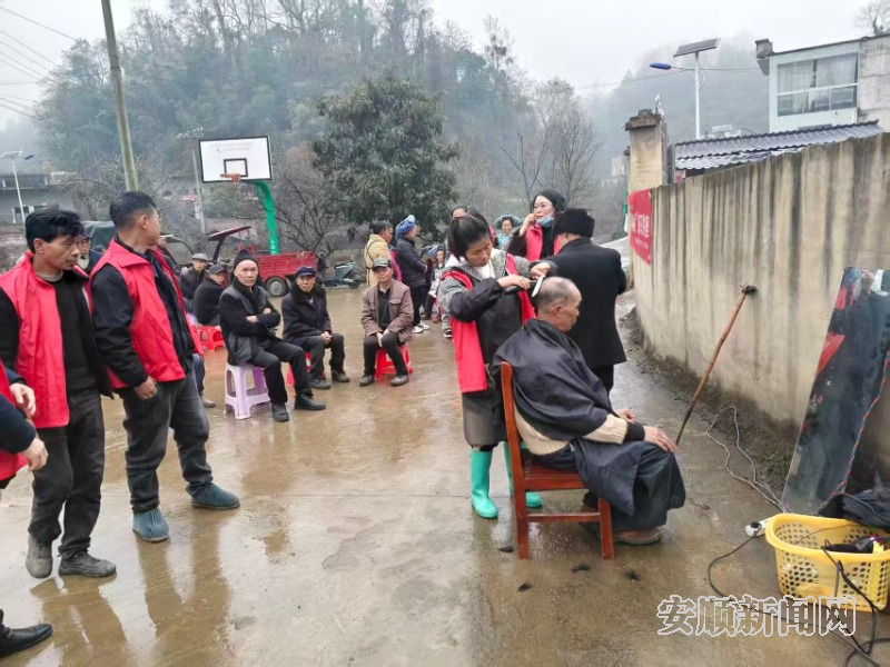 “大娘您看这个发型剪得合不合心意?”“叔,最近身体咋样?”村“两委”主动联系的理发师们摆开简易“理发铺”,剪刀、梳子、推子齐上阵,娴熟地为老人们修剪头发。指尖翻飞间,发丝簌簌落下,老人们围坐等候,你一言我一语拉着家常,聊身体近况、说村里新变化,爽朗的笑声在广场上空回荡。