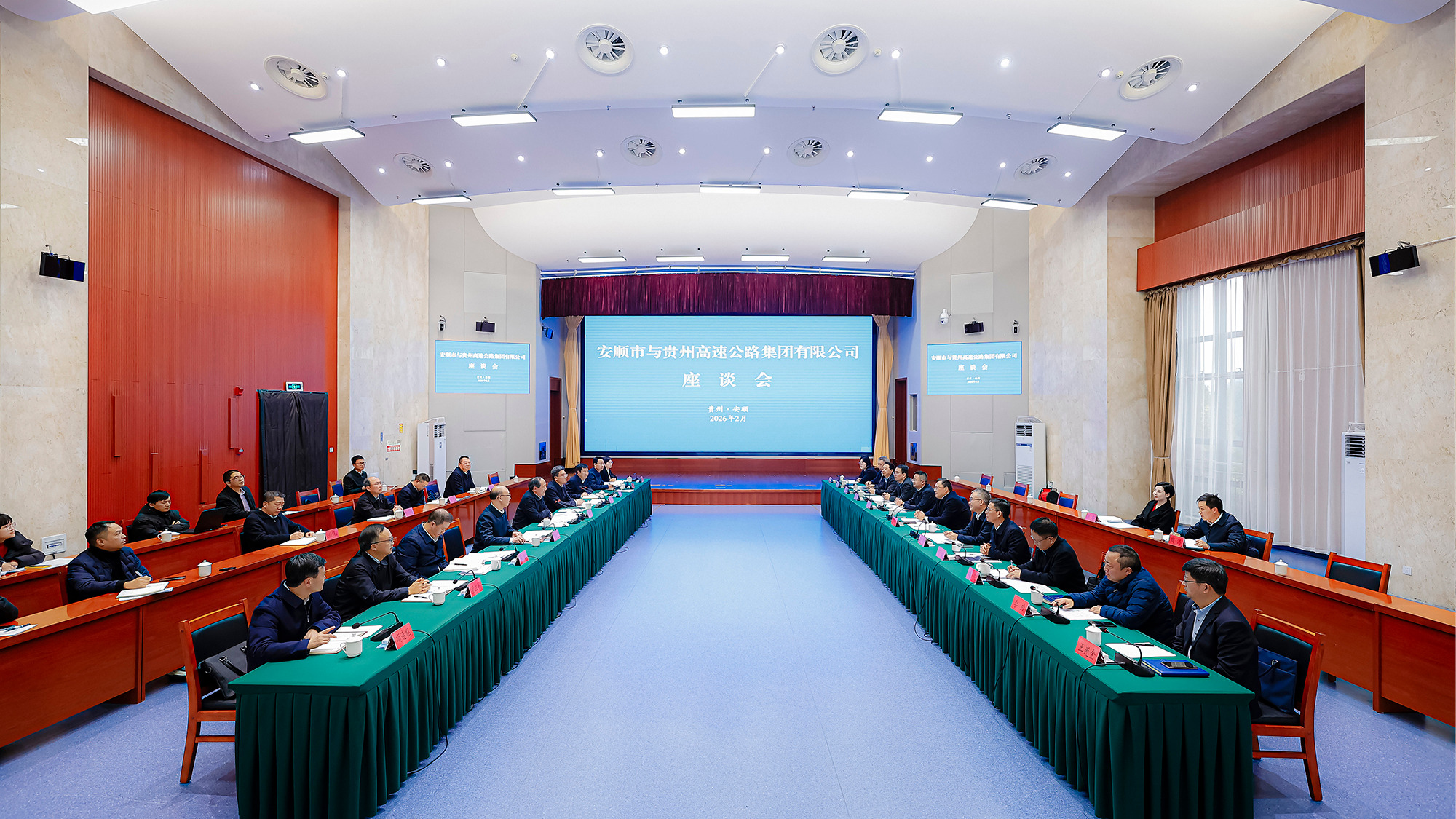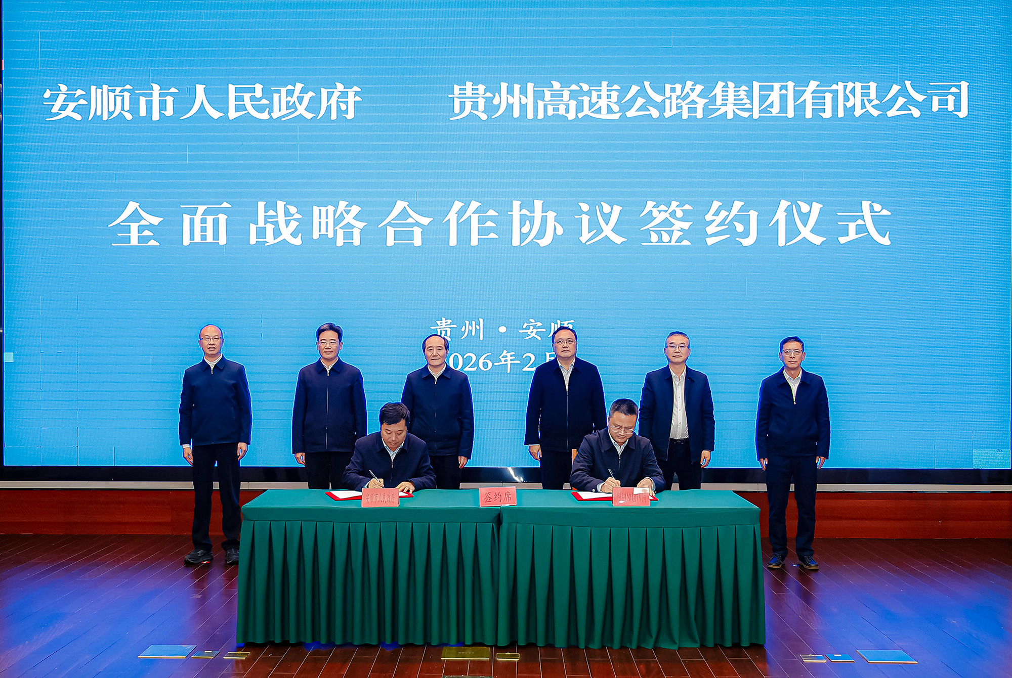 2月10日,安顺市与贵州高速公路集团有限公司签约座谈会举行。市委书记杨昌鹏,贵州高速公路集团有限公司党委书记、董事长龙平江共同出席《安顺市人民政府 贵州高速公路集团有限公司全面战略合作协议》签约仪式并讲话。市委副书记、市长尹恒斌主持。贵州高速公路集团有限公司党委副书记、副董事长、总经理陈虎,贵州高速公路集团有限公司副总经理杨光勇、杨俊,市领导王勋勇、赵温跃、吴松参加。