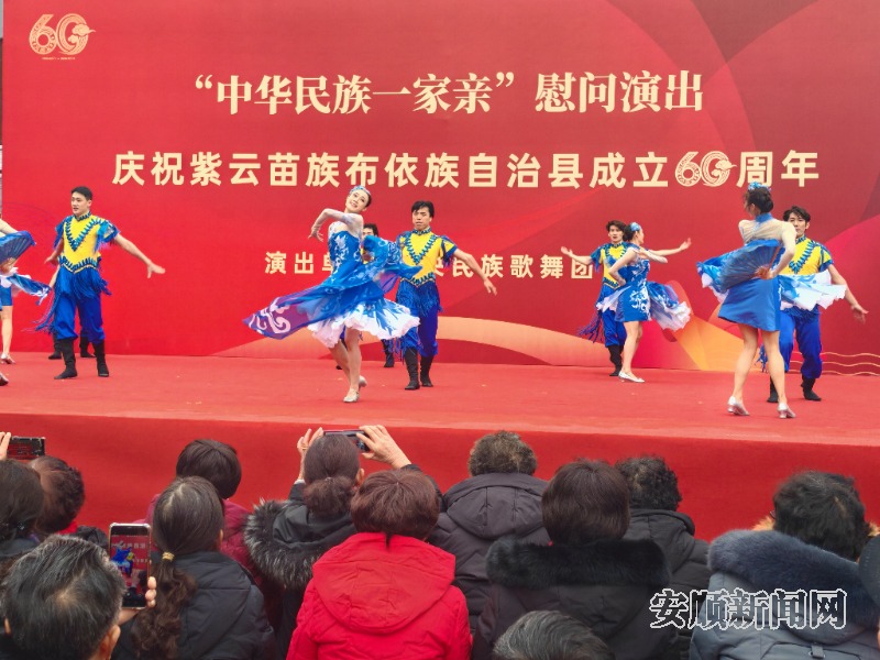 2月10日下午,中央民族歌舞团走进紫云,为当地干部群众带来“中华民族一家亲”慰问演出,庆祝紫云苗族布依族自治县成立60周年,通过舞蹈、歌唱、器乐演奏等表演,展现各民族团结奋进的时代风采和中华优秀传统文化的无限魅力。