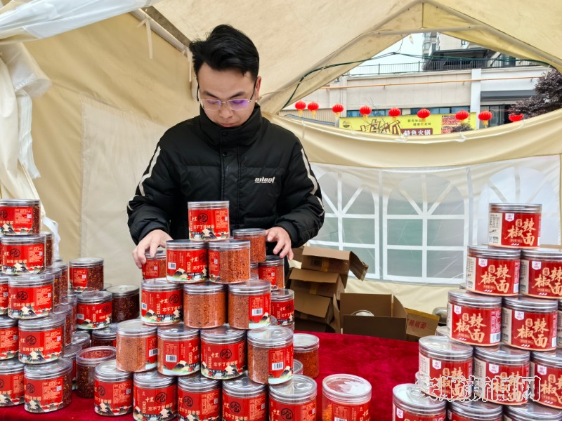 “每天都能卖出去百把多罐,来买的既有本地老顾客,也有外地游客!”贵州十里呛食品有限公司工作人员付尚贵手上的动作不停,脸上满是笑意。他告诉记者,此次特意带来超辣、蒜香、麻辣三款镇宁本土辣椒面,“年货节这个平台太给力了,既能让更多人尝到镇宁的特色味道,也能帮我们拓宽销路,把家乡特产推得更远。”