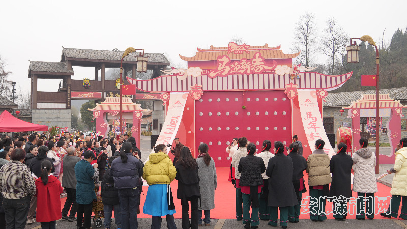在活动现场,红灯笼、地戏脸谱与古朴的屯堡石墙相映成趣,舞蹈、舞狮表演轮番登场,赢得在场游客阵阵欢呼。随后,众人一同推开财门,寓意敞开福门、广纳财源,也让远道而来的游客沾福纳祥。整个仪式庄重而热闹,还原了明代屯堡年俗风貌,让现场游客沉浸式感受传统文化魅力。