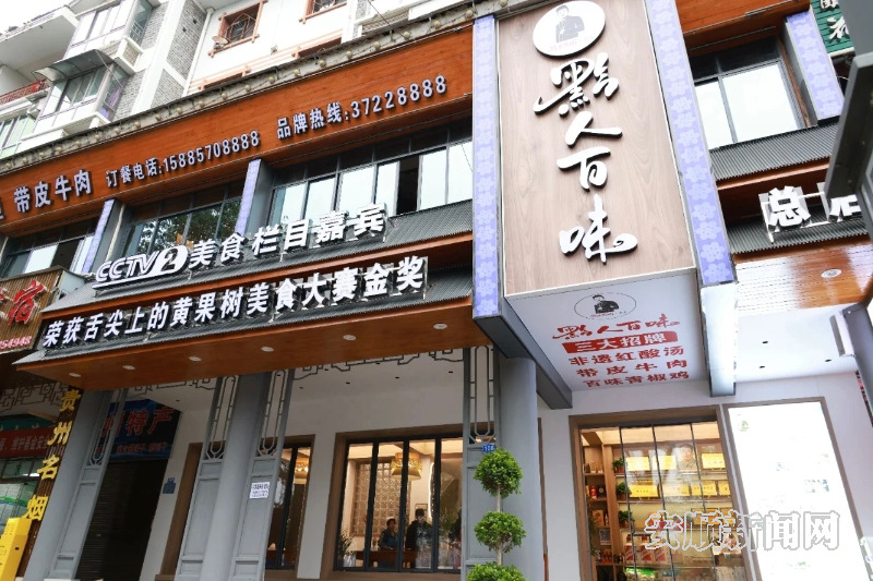 农历大年初二,黄果树景区迎来春节旅游高峰,车流涌动、游人如织,处处洋溢着浓浓的新春年味。坐落于黄果树旅游区新城广场的黔人百味餐饮店内,红灯笼高挂、喜气盈盈,厅堂内座无虚席、笑语不断,后厨炉火升腾、香气四溢,为八方游客烹制出旅途里最暖心的人间烟火。
