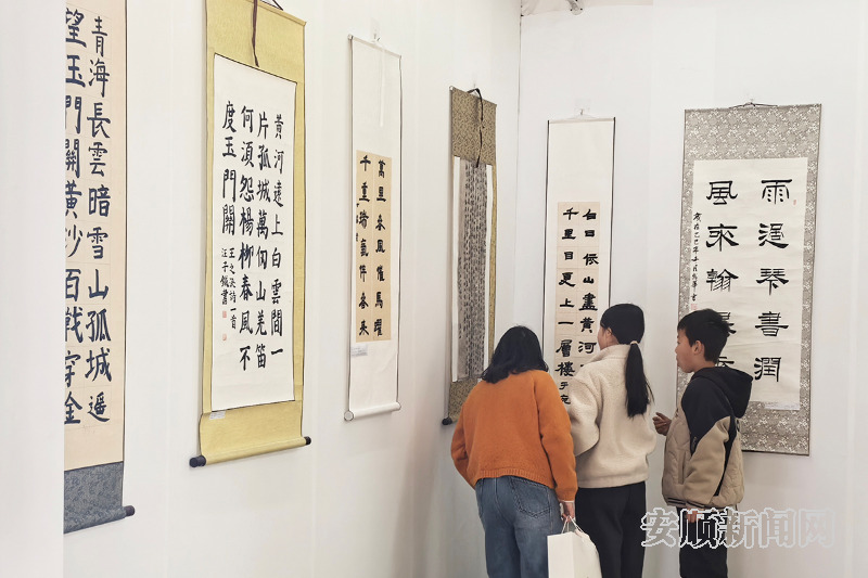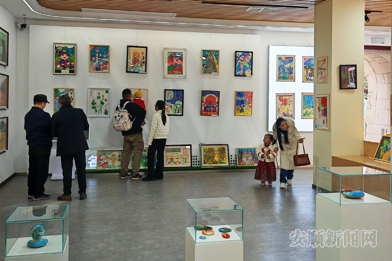 走进展厅,满室墨香扑面而来,一幅幅由全县各中小学师生代表创作的美术画作、笔墨书法、手工非遗等优秀作品,立意高远、生动形象,既饱含对新春佳节的美好祝福,又生动展现镇宁民族文化、人文风情与时代新貌。