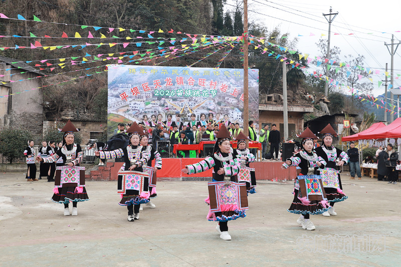 2月19日,正月初三,春意融融,平坝区天龙镇合旺村岩上组的山间小路上已经车水马龙。一年一度的苗族传统跳花节在这里如期举行,当地苗族同胞身着节日盛装,载歌载舞,共庆新春佳节。这一由村民自发组织的民俗活动,传承至今已有上百年历史,此次活动将持续两天。