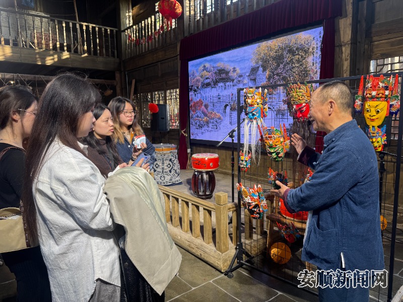 来到儒林路,安顺记忆展成为不少人打卡的好去处。一张张老照片、一件件老物件整齐摆放,记录着安顺的城市变化和生活点滴。街区里的说书茶馆人气不减,本土自媒体博主“屯堡二爷”用地道方言讲述安顺老故事,介绍地戏面具文化,老一辈市民驻足回忆,年轻人认真聆听,大家在展品与讲述中感受安顺的历史与乡愁。“这些老照片里的场景我小时候都见过,看着很亲切,这个展览留住了安顺的老味道。”60多岁的市民李大爷说。