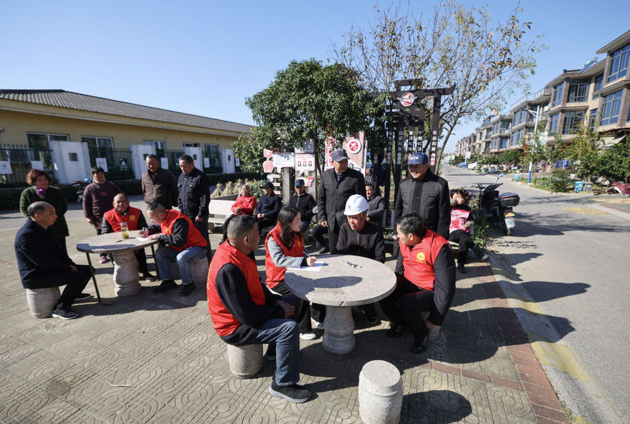 2025年11月19日,浙江省湖州市长兴县吕山乡龙溪村的村民议事协商小组在村里的议事协商公园里就村务发展征集意见。新华社记者 徐昱 摄