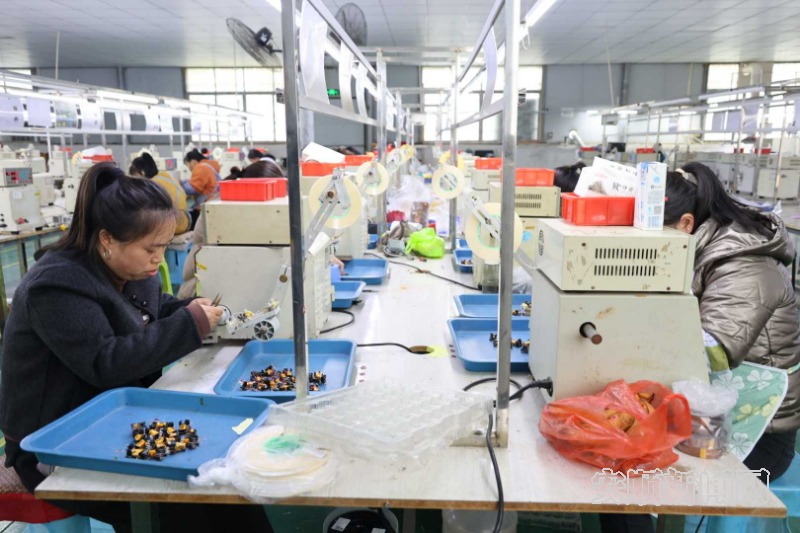 据悉,安顺市伏特电子有限公司是鸡场乡2018年重点引进的民生型、就业型加工企业,扎根易地扶贫搬迁安置点启新小区,主要从事电子元件、变压器线圈等产品加工生产,产品在远销国内外的同时长期为周边村民提供就业岗位。“自正月初八复工以来,公司迅速从‘节日模式’切换到‘生产模式’,管理人员到岗到位、生产班组全员返岗,设备调试、物料供应、质量检测等环节同步跟进,实现人员全到岗、设备全运转、产能快恢复。”安顺市伏特电子有限公司行政主管王锐表示。