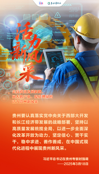 今天(3月6日)上午,出席十四届全国人大四次会议的贵州代表团在驻地举行团组开放日活动,全国人大代表、省委书记、省人大常委会主任徐麟就贵州在“十五五”时期如何走出新路子、展现新风采回答了人民日报记者提问。六张海报,读懂“奋进、活力、幸福、文明、美丽、勤廉”六个贵州新风采。