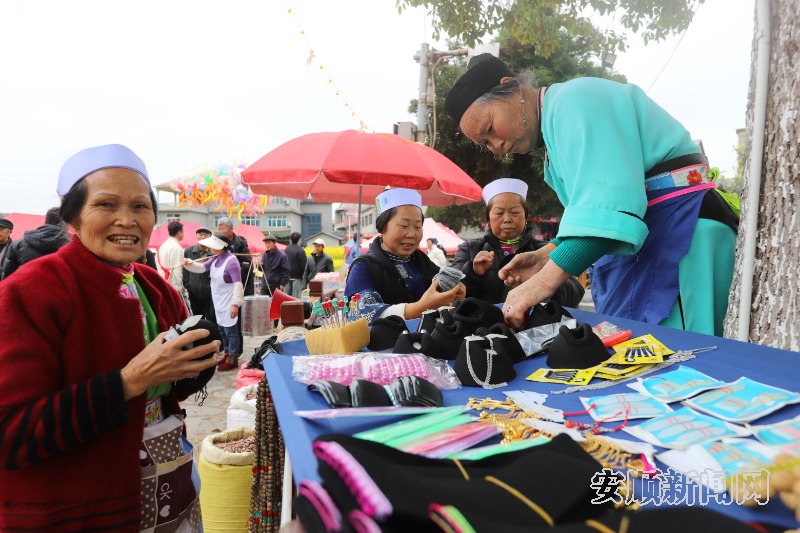 在入村街道旁一间小吃坊,游客排队购买屯堡美食松糕粑,店主鲍红秀忙得不亦乐乎。“今年赏花季游客较多,小吃生意也好,每天营业额有1000多元。”鲍红秀说,自从几年前村里开始举办赏花季活动,她便凭自己的手艺卖起了松糕粑、裹卷等小吃,日子越过越红火。
