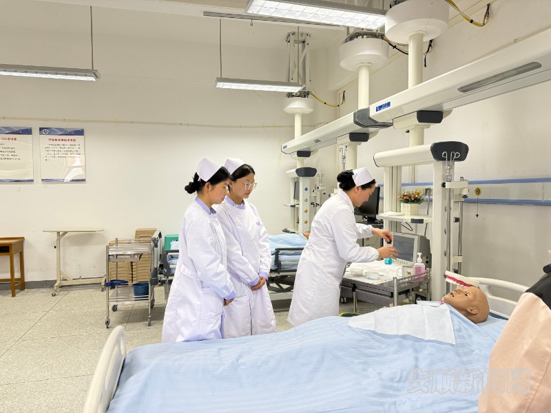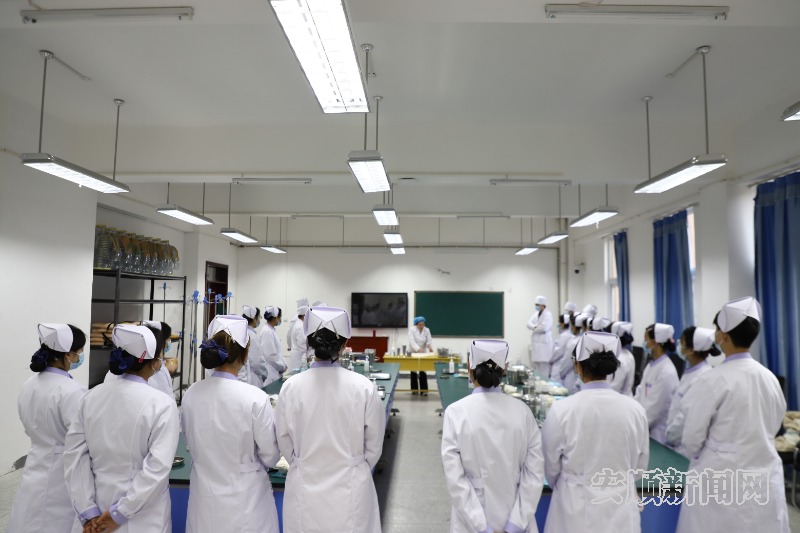 “我们的操作要全程保持肩部以下操作规范。”“护理操作容不得半点马虎,每一步都要做到准确无误。”……清晨的阳光透过明净的窗户,洒在安顺职业技术学院护理系的实训室里。空气中弥漫着淡淡的消毒水味,身着整齐护士服的学生们围站在操作台旁,目光专注、神情肃穆,紧紧跟随着女教师的动作,认真研习基础护理学的无菌技术操作要领。