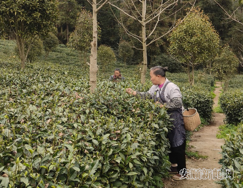 农户采摘鲜嫩茶叶