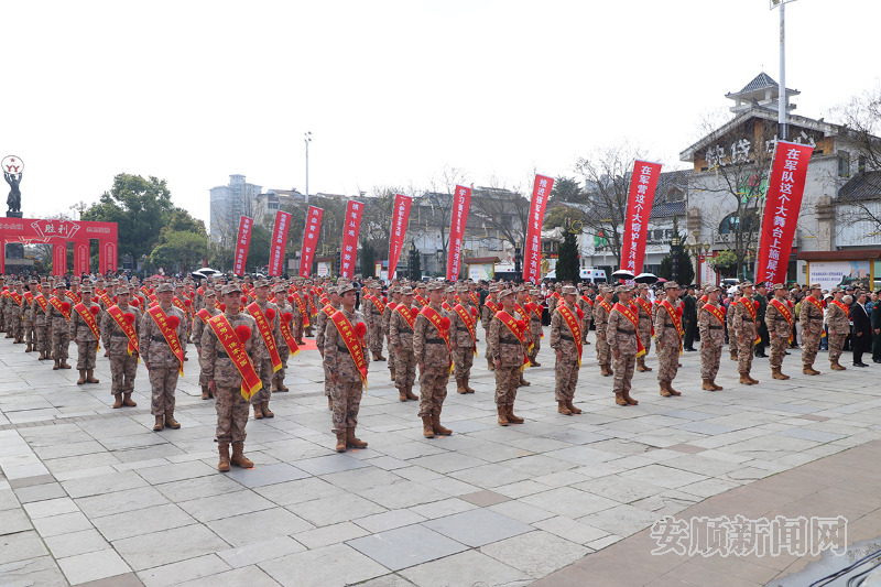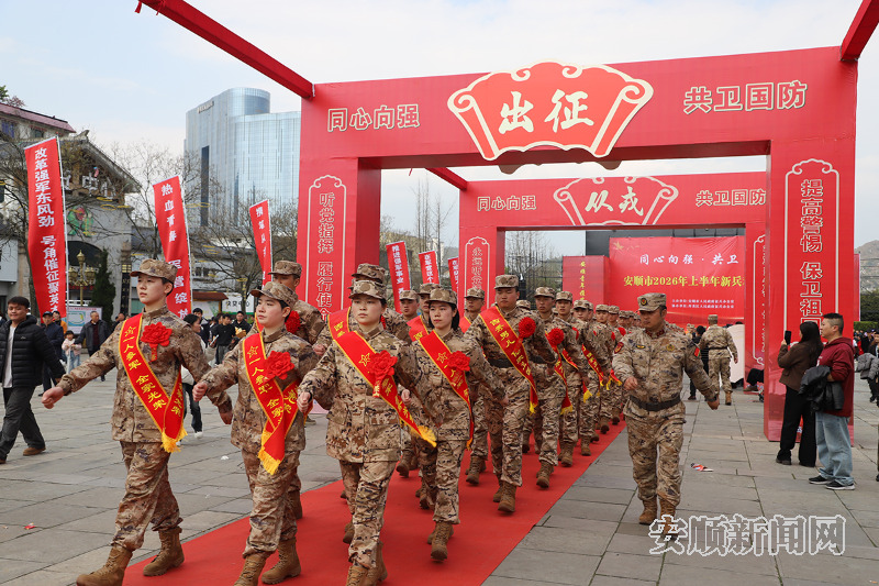 3月17日,安顺市2026年上半年新兵欢送会在若飞广场举行,来自全市各地的新兵身着崭新戎装、胸佩红花,肩负着家乡人民的嘱托,即将奔赴军营。市委常委、安顺军分区大校司令员何恭仁出席并讲话,安顺军分区大校政治委员郑风潮、副市长贺未泓出席。
