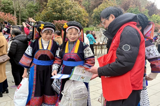 3月18日,镇宁布依族苗族自治县高荡村迎来布依族传统节日“了年”,当地群众身着民族盛装,以打糍粑、炸油团等特色民俗活动欢庆佳节,现场洋溢着浓郁的民族风情。人保财险贵州安顺镇宁支公司以此次民俗活动为契机,组织工作人员深入现场开展金融知识宣传活动,把防范电信网络诈骗、反洗钱、防范非法集资等知识送到少数民族群众身边。