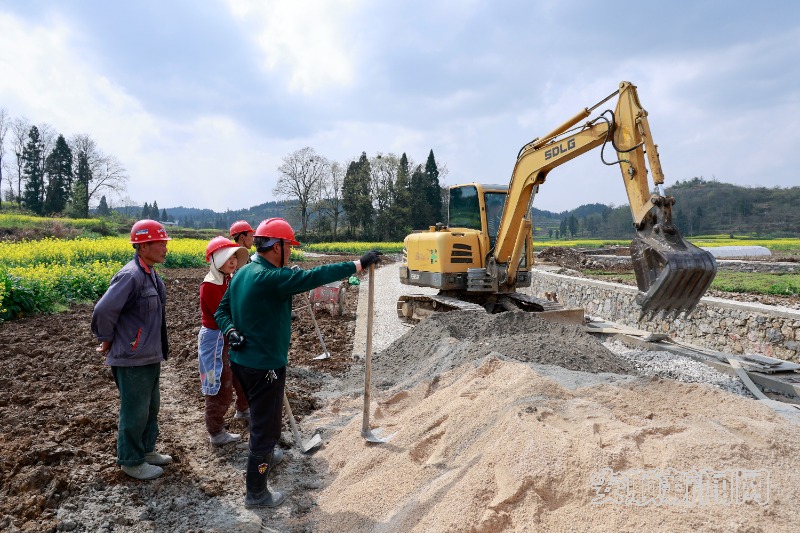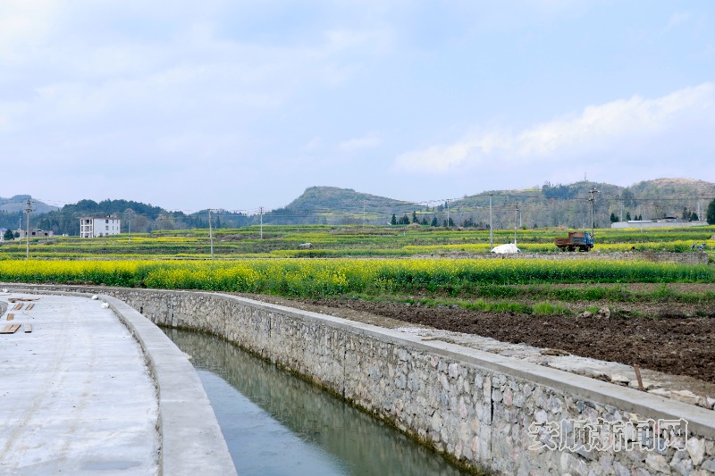 日前,记者在西秀区双堡镇九龙山村和刘官乡三星堡村的项目现场看到,春日暖阳洒在连片油菜花田间,数台挖掘机挥舞长臂,工程车辆往来穿梭,土地平整、灌渠建设等作业正有序推进,现场一派繁忙景象。