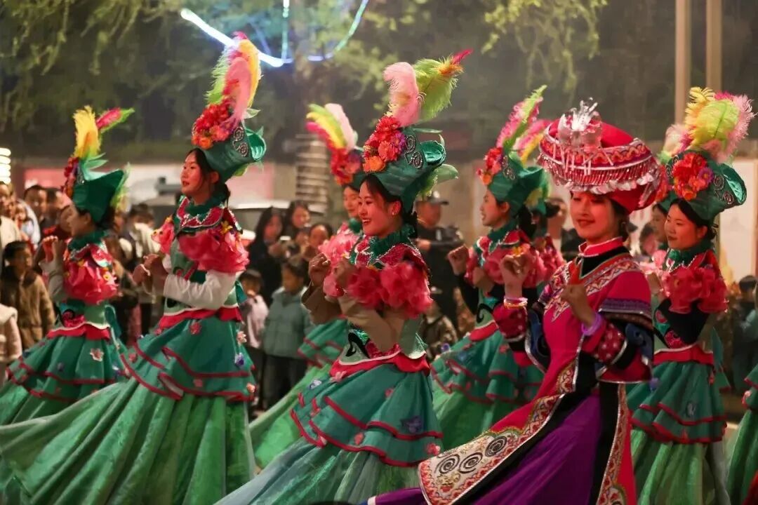 城区内花仙子巡游融合民族非遗、打铁花、火壶表演、夜迪狂欢,白天赏花夜里嗨。