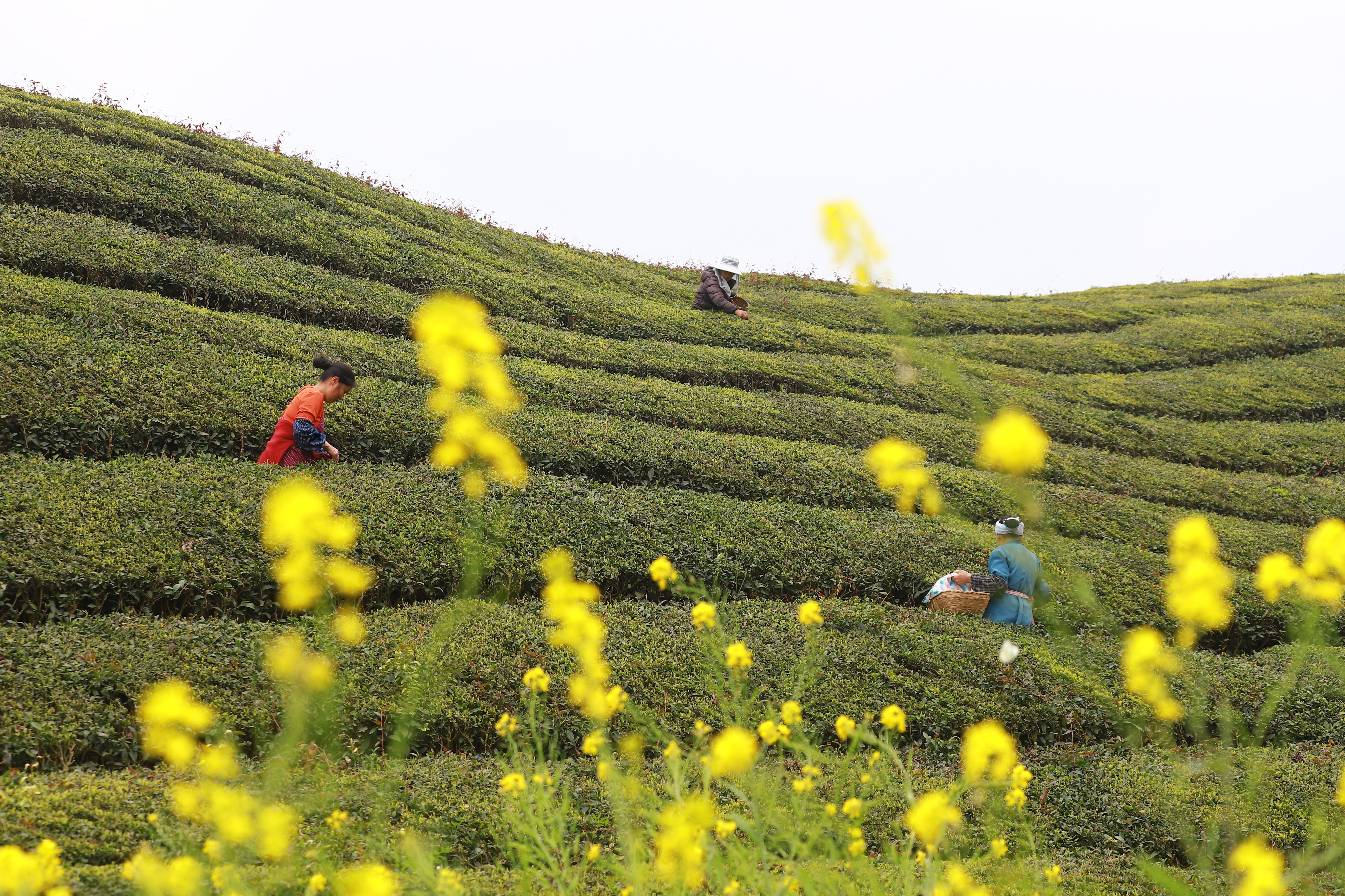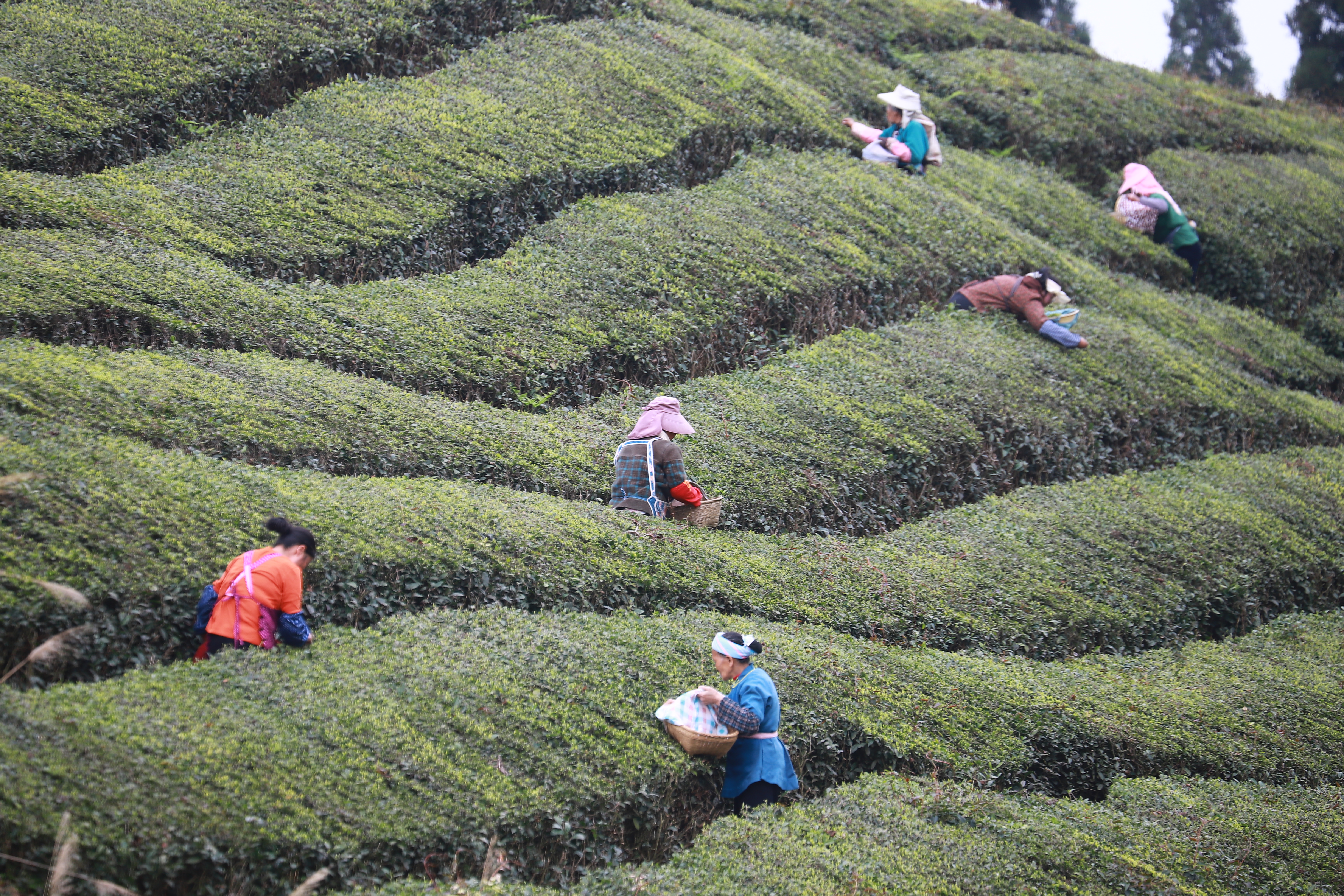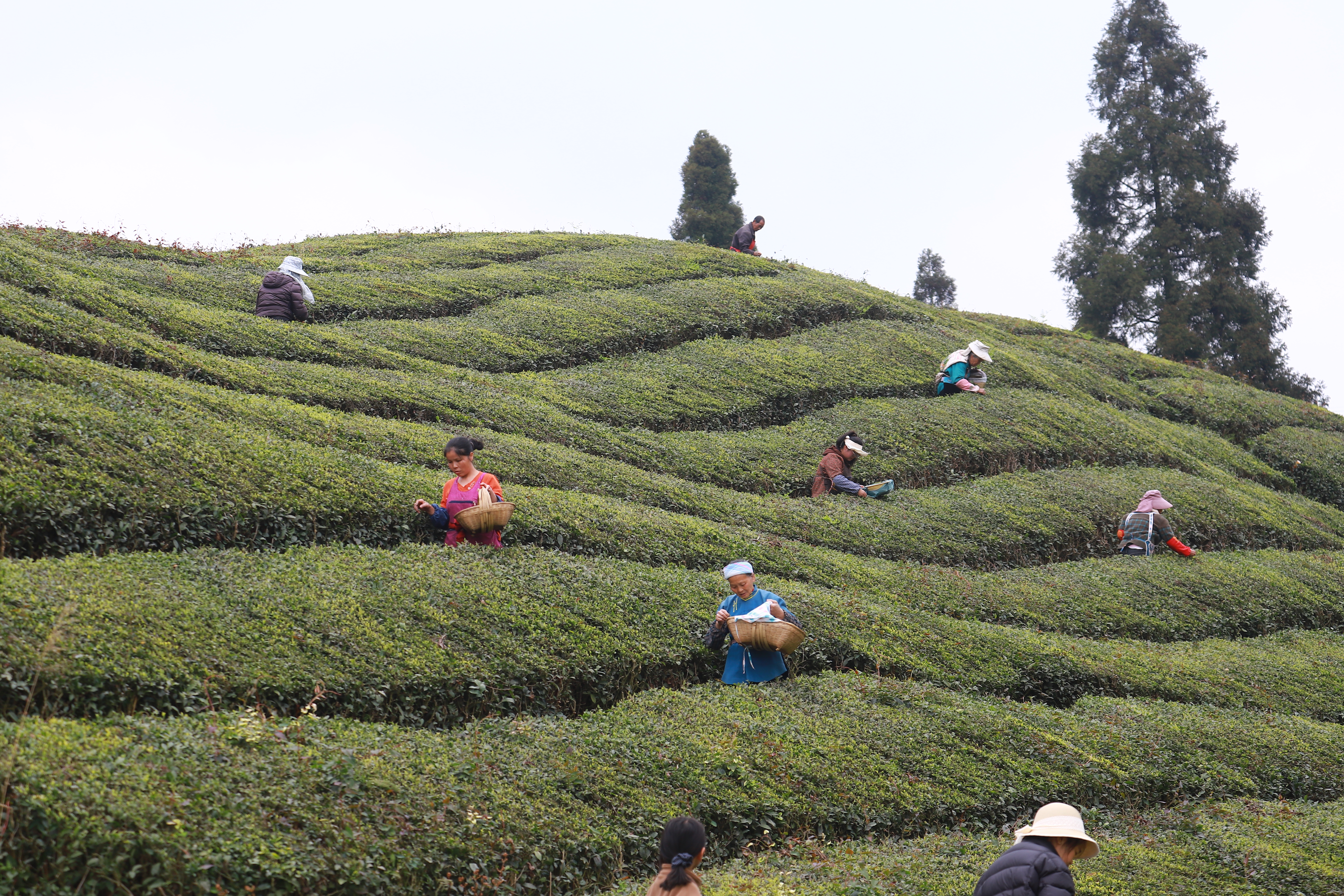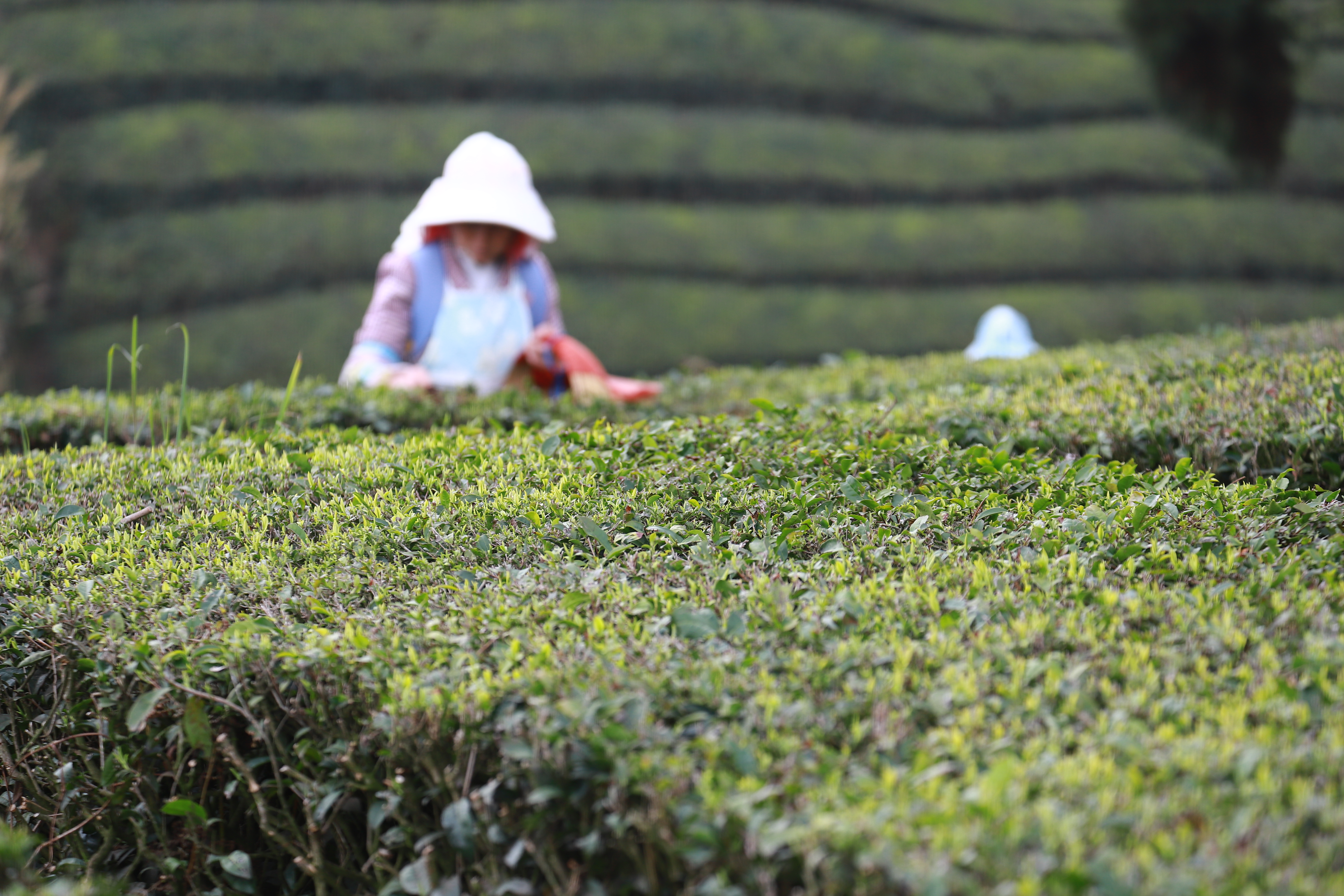 眼下,我市各大茶场迎来春茶采摘黄金期,茶农抢抓农时忙着采摘、炒制春茶,茶园一片忙碌景象。图为3月18日,茶农在双堡镇山京军马场茶园采摘春茶。