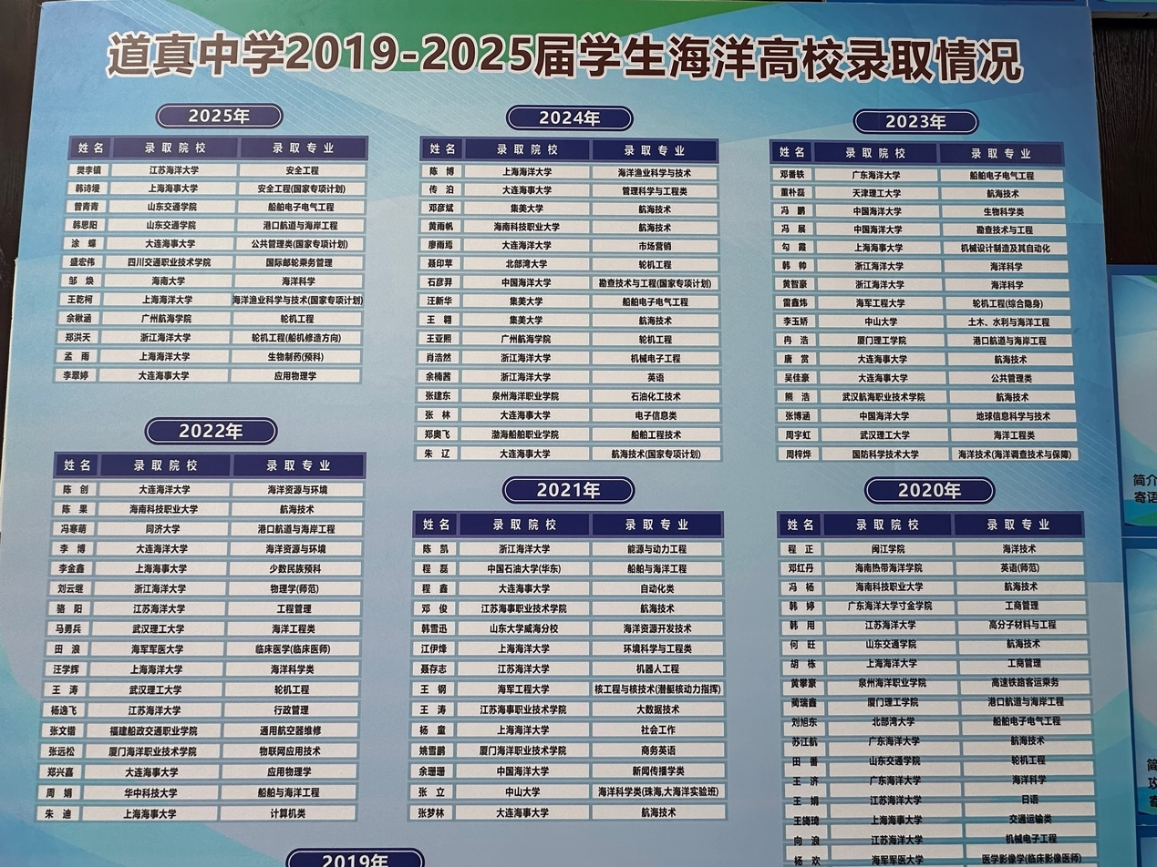 从2022年到2025年间,道真中学本科升学率从83%提升到了97%以上。600分以上的人数从每年35人增加至每年73人,近年来,该校有114位学生考入全国知名高校的涉海专业。