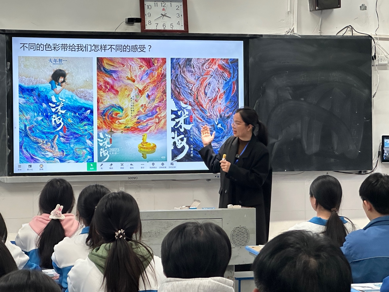 刚上完课的高一4班学生李昕晨分享了自己的学习感受:“美术熏陶了我们的审美意识,帮助我们对海报有了更多理解,提高了我们的人文素质。”