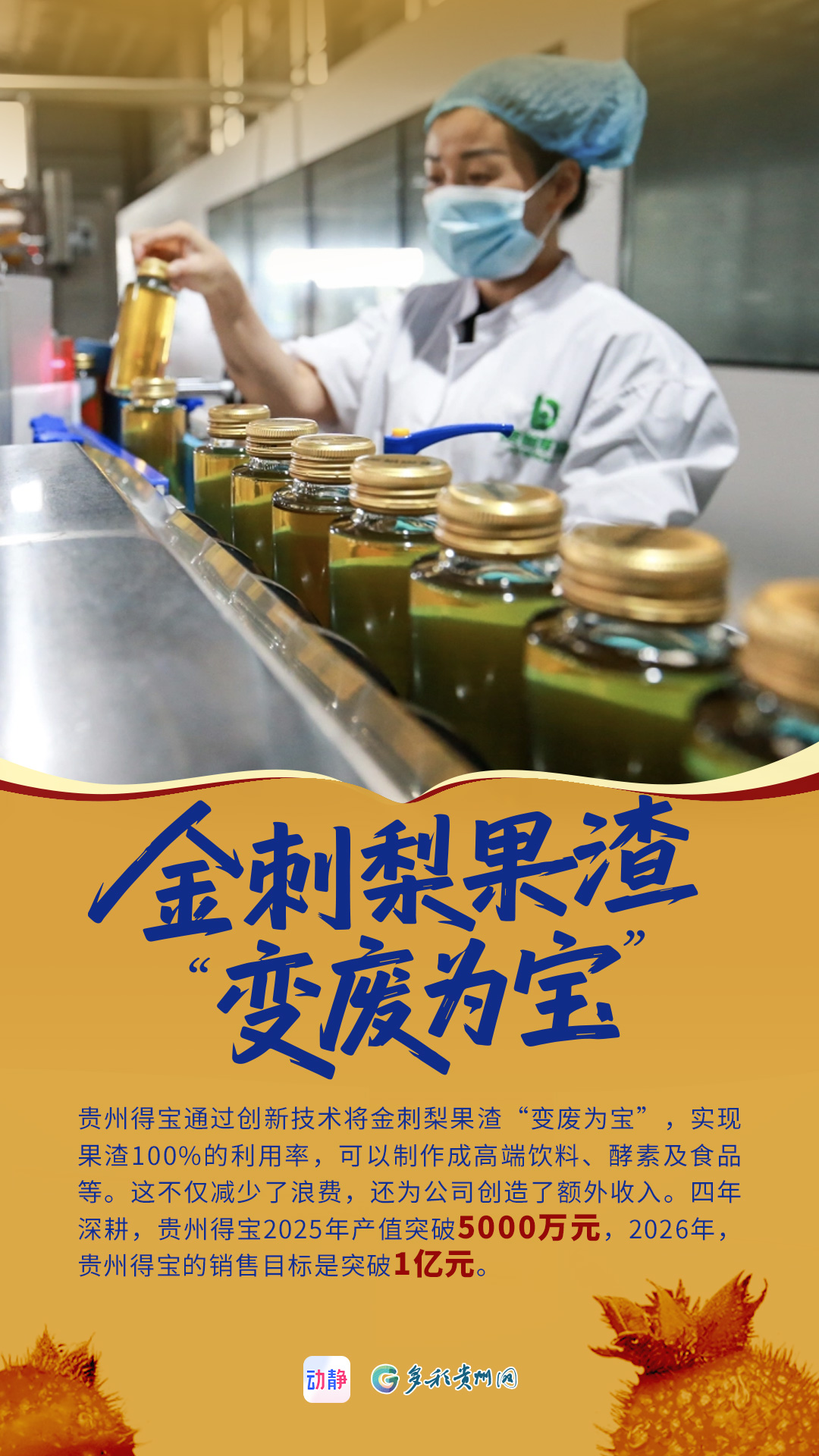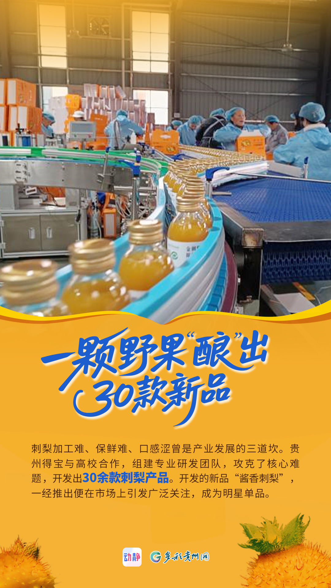 一颗小小的金刺梨,正迸发出巨大的产业能量。贵州得宝农业科技有限公司通过精深加工与创新研发,将这颗野果成功“酿”出超过30款特色新品。从饮品、食品到保健品,链条不断延伸,催生出一个规模达亿元的富民产业,成为安顺市特色农业转型升级的生动样本。