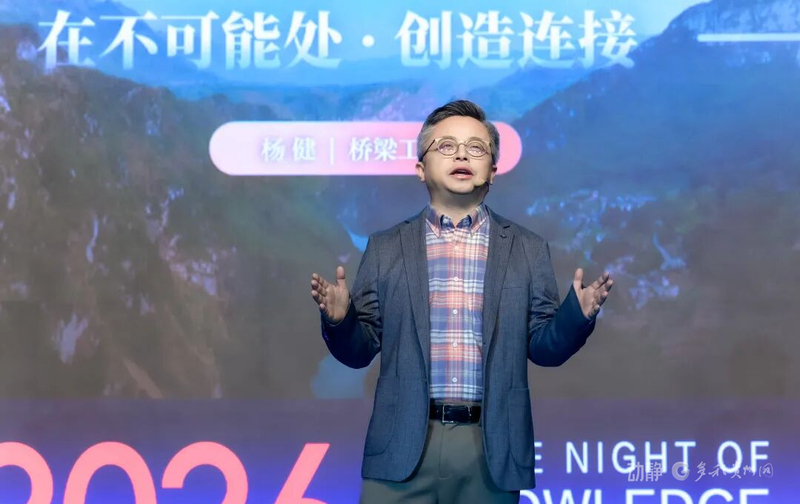 2025年末,贵州省交通规划勘察设计研究院股份有限公司总工程师杨健登上江苏电视台跨年知识大会的舞台,以行业先锋的身份,围绕花江峡谷大桥建设实践,作了题为《跨越地球裂缝——在不可能处,创造连接》的分享。这场以“更新”为主题的跨年盛会,汇聚了各领域顶尖实践者,全网曝光量达293.8万。