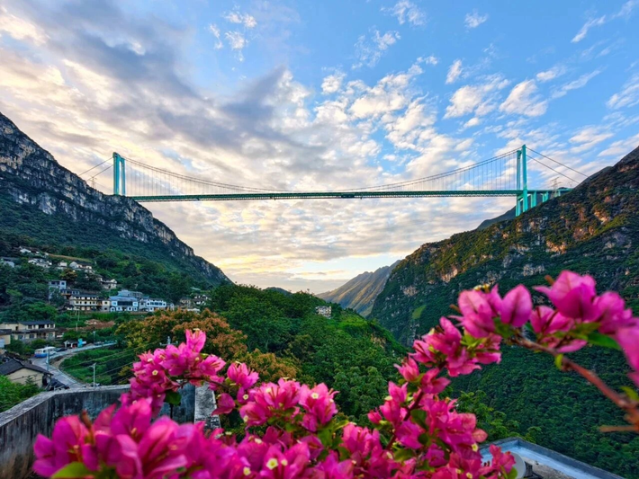 位于安顺市境内的坝陵河大桥,全长2237米,主跨达到1088米,桥面至坝陵河水面高达370米。2009年底建成通车时被誉为“国内第一,世界第六”的大跨径钢桁梁悬索桥。坝陵河大桥是贵州“桥旅融合”的典范之作,作为世界首座山区峡谷千米级跨径桥梁,它因其高空蹦极项目370米的高度,被吉尼斯世界纪录认证为世界最高的商业蹦极,成为越来越多国际低空运动爱好者的“打卡地”。
