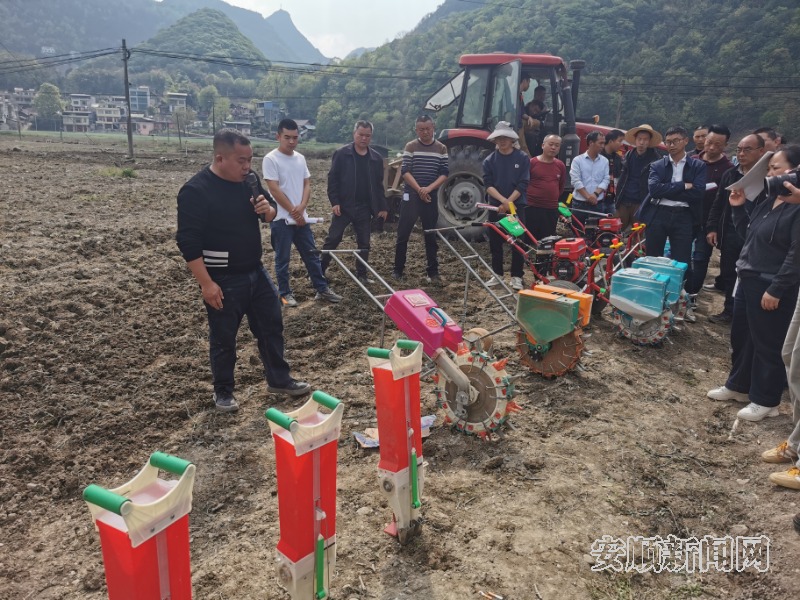 培训现场集中展示了单行、双行等多款适配丘陵山区地形特点的玉米播种机,技术人员逐一细致讲解机具性能、操作要点与适用场景,让参训人员直观了解新型农机装备优势。紫云自治县农业农村局组织技术骨干,面向全县13个乡镇农业服务工作人员及种植农户代表开展专项培训。