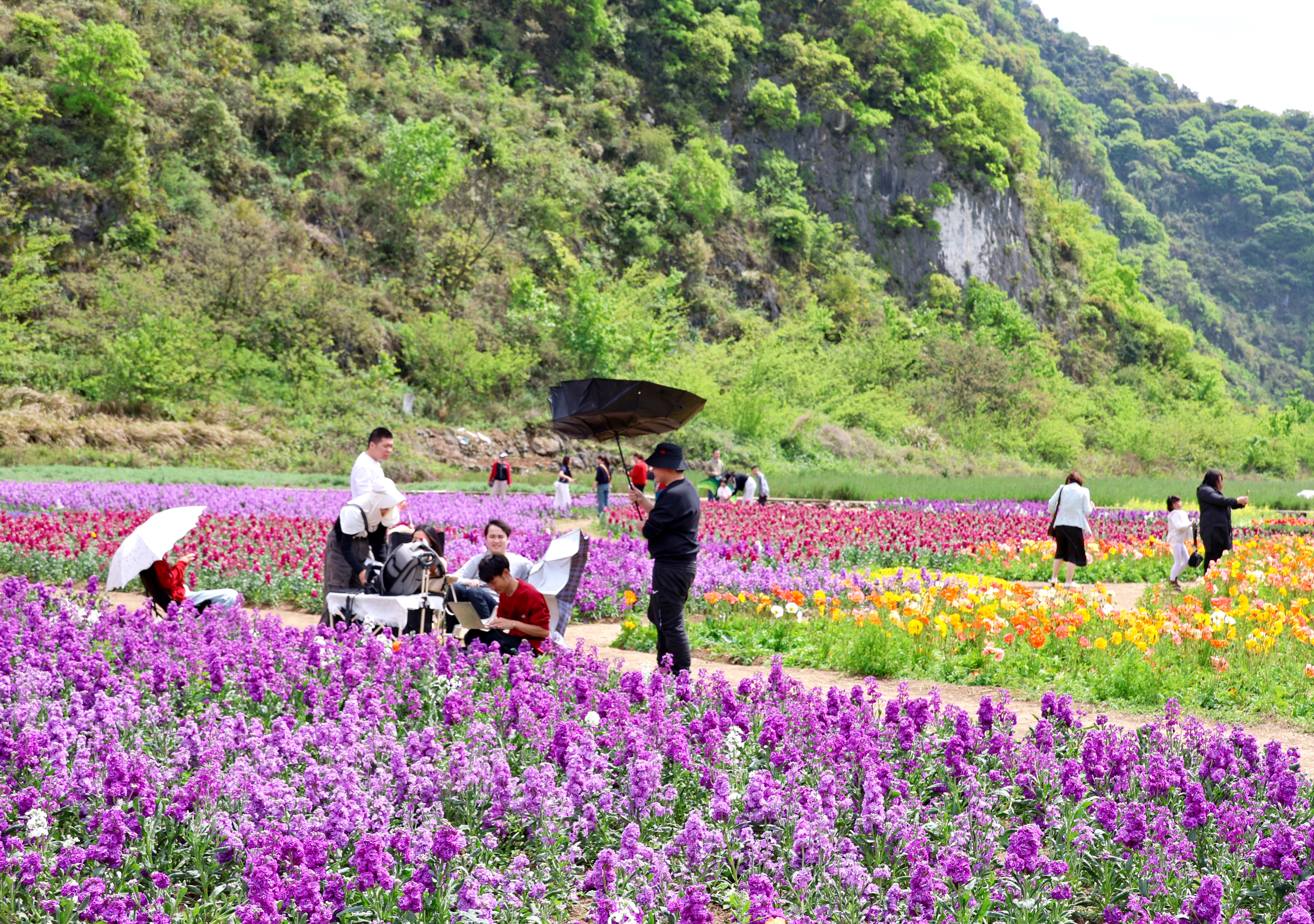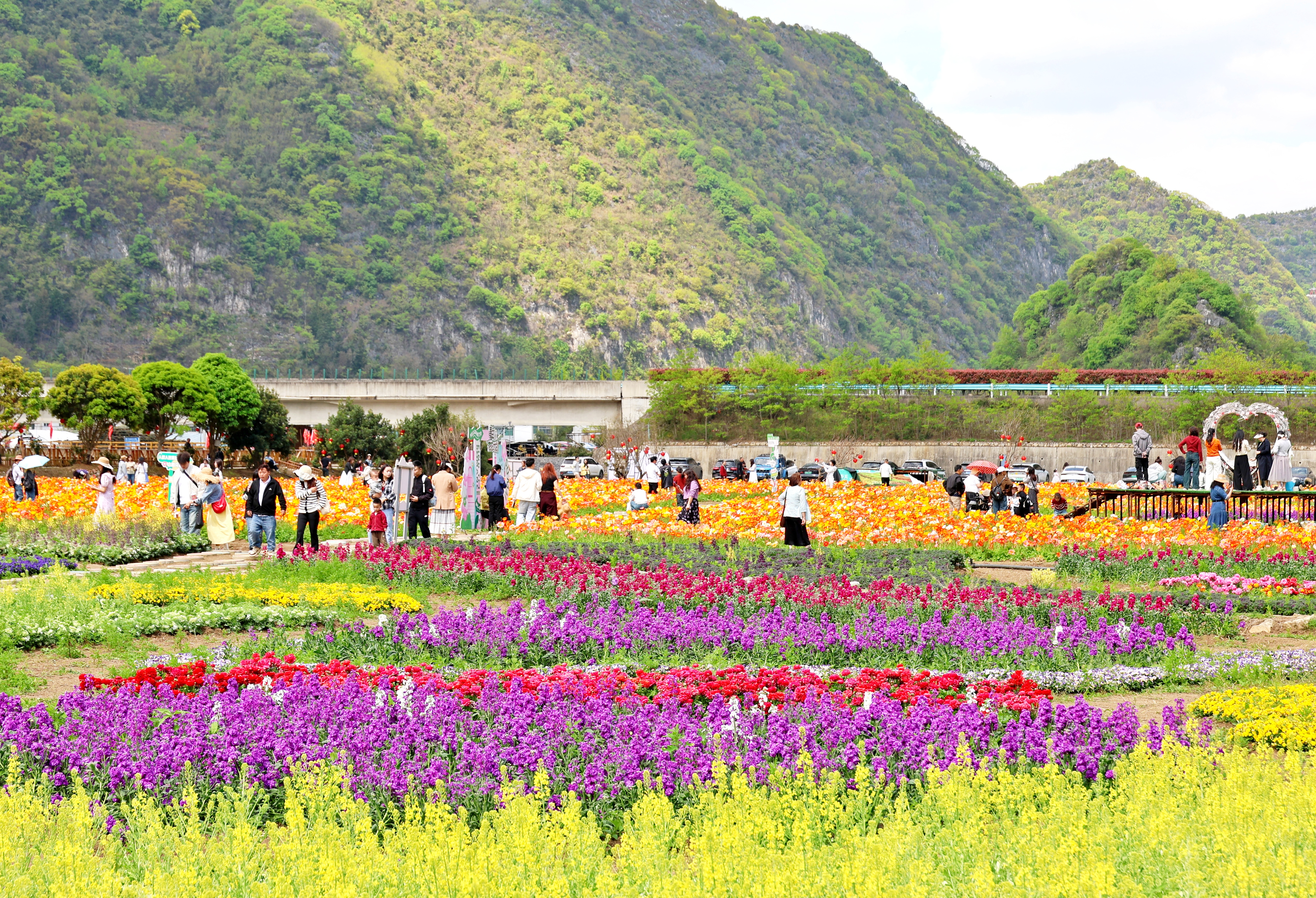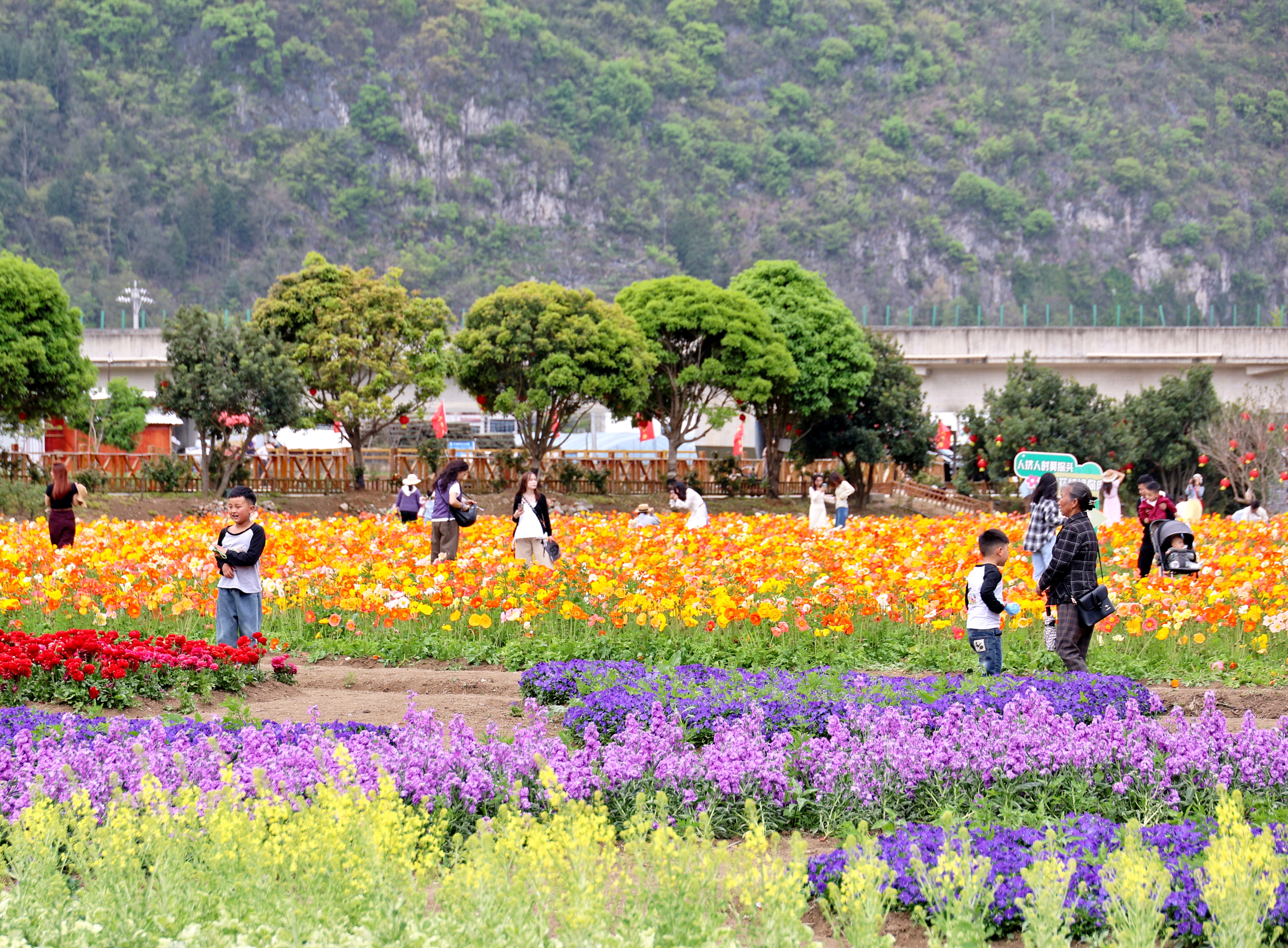 春风送暖,百花争艳。在位于黄果树旅游区龙宫镇下苑村的“花之奇缘”农业观光园内,以虞美人为主,紫荆、角堇等为辅的百亩花海迎来盛花期,数十万株花卉交织成春日里的限定美景,吸引了大批游客前来打卡游玩。