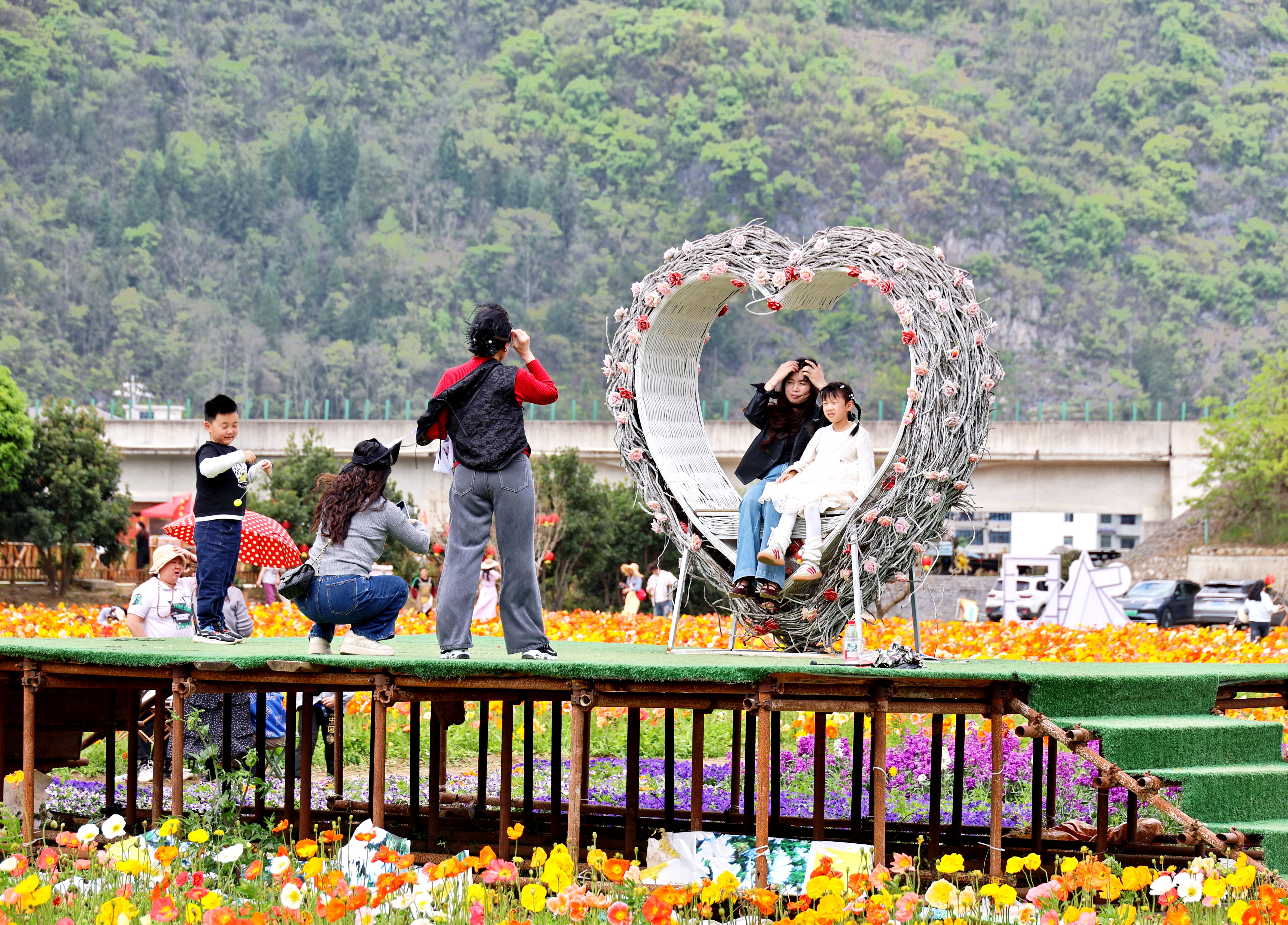 “目前园内虞美人正值盛花期,周末及节假日日均客流达到数千人次,成为短途游、赏花游的休闲好去处。在做好赏花经济的基础上,我们也在不断丰富旅游业态,因地制宜打造了30亩休闲草坪,推出露营、烧烤等游玩项目,形成‘赏花+露营+烧烤+亲子’的消费闭环。”“花之奇缘”农业观光园相关负责人杨斌介绍,今年“五一”假期,园内绣球、玫瑰、马鞭草等花卉接力绽放,将为游客带来夏日花海观赏盛宴,届时景区也将精心筹备百桌坝坝宴等赏花节系列活动,进一步丰富游客体验感,提升景区知名度。