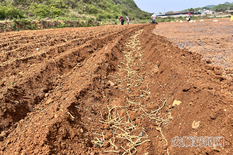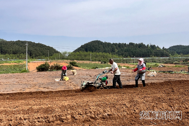 春日暖阳下,西秀区双堡镇山京村的田间地头一片繁忙。翻耕机翻松土壤,村民们平整土地、撒种育苗,嫩绿的折耳根幼苗生机盎然。